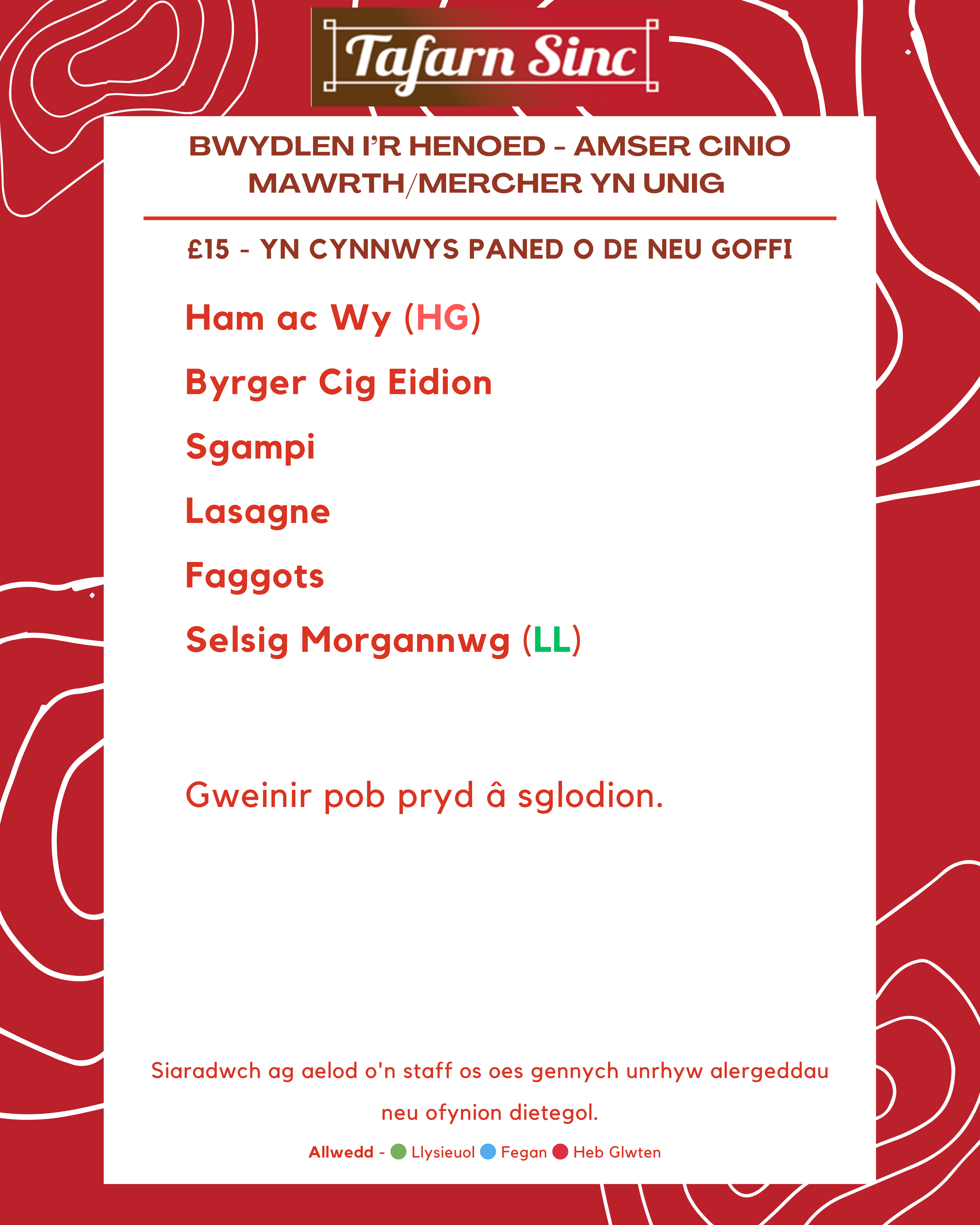 Cliciwch ar y llun isod i weld ein bwydlen.